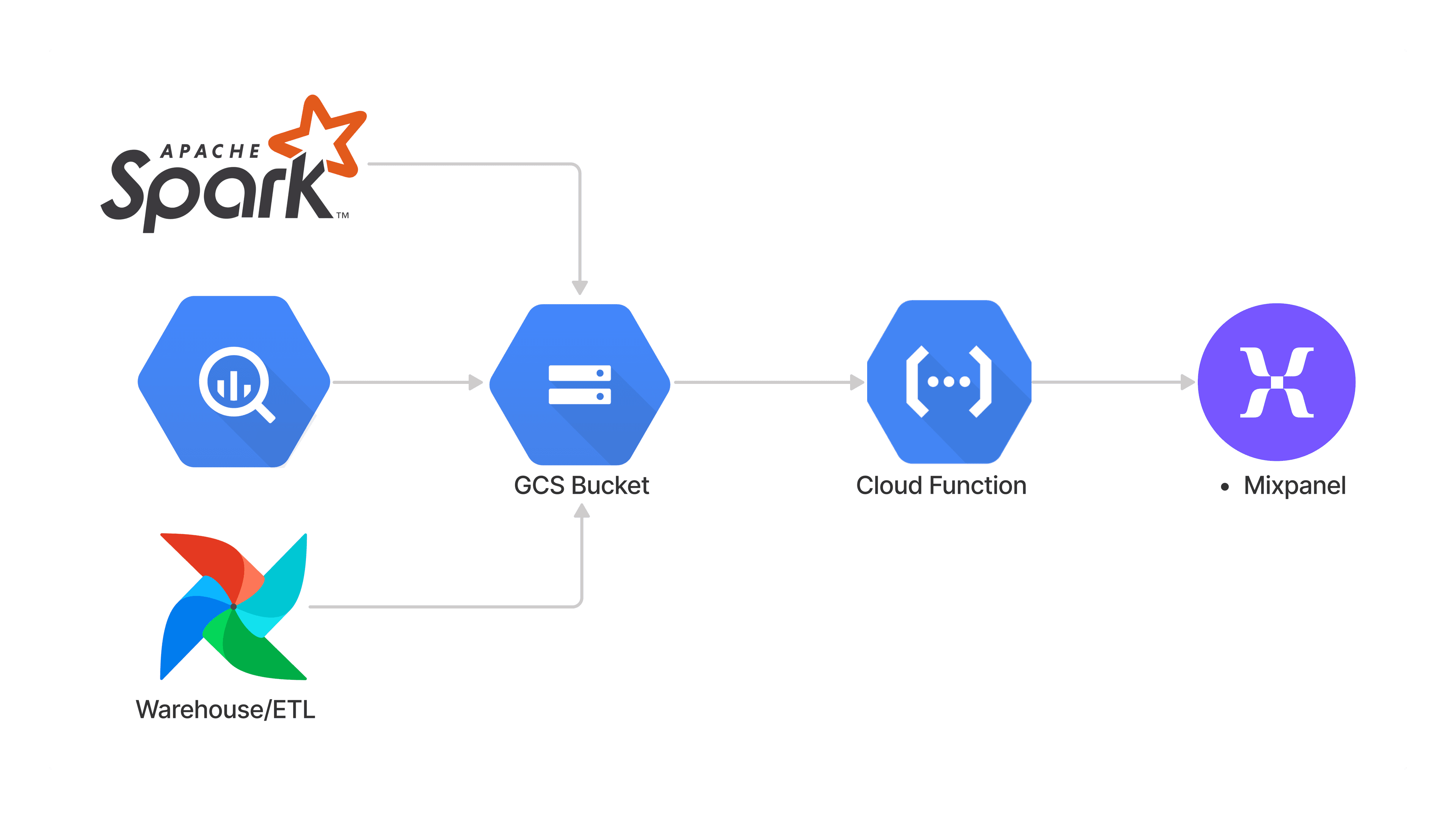 This guide demonstrates how to set up a serverless ingest pipeline from a Google Cloud Storage bucket into Mixpanel. Once this is set up, you can simply upload files containing events into the designated GCS bucket and the events will be ingested into Mixpanel, both one-time and on a recurring basis. Setup should take ~10 minutes.